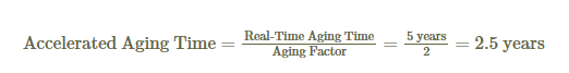 - Determine Aging Factor (Q10): Commonly, a Q10 value of 2 is used, implying that a 10°C increase in temperature doubles the rate of aging.